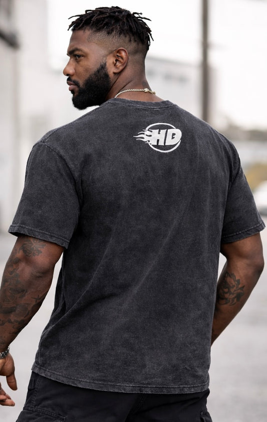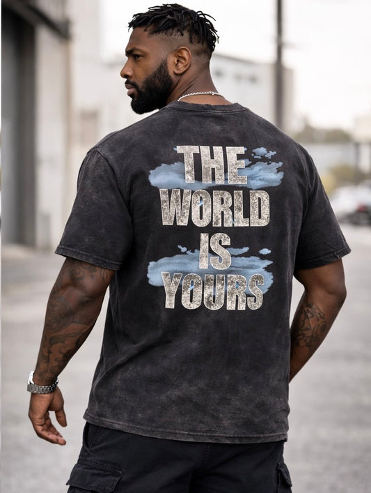 “The World Is Yours” Acid Wash Graphic Te black and orange